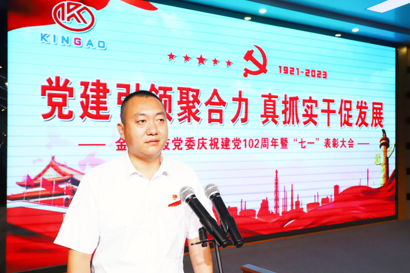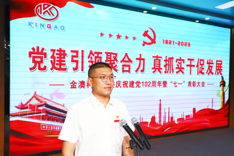 会上,吴总裁以《发挥表率促发展 履职尽责显担当》为主题发表讲话。他表示,公司党委每年都组织召开“七一”表彰大会,目的是进一步引导员工爱国、爱党、爱企、爱家,在工作中充分发挥共产党员的先锋模范带头作用,激发公司各党支部的组织活力,增强广大党员的光荣感、使命感、责任感,促进金澳的各项事业又好又快发展。